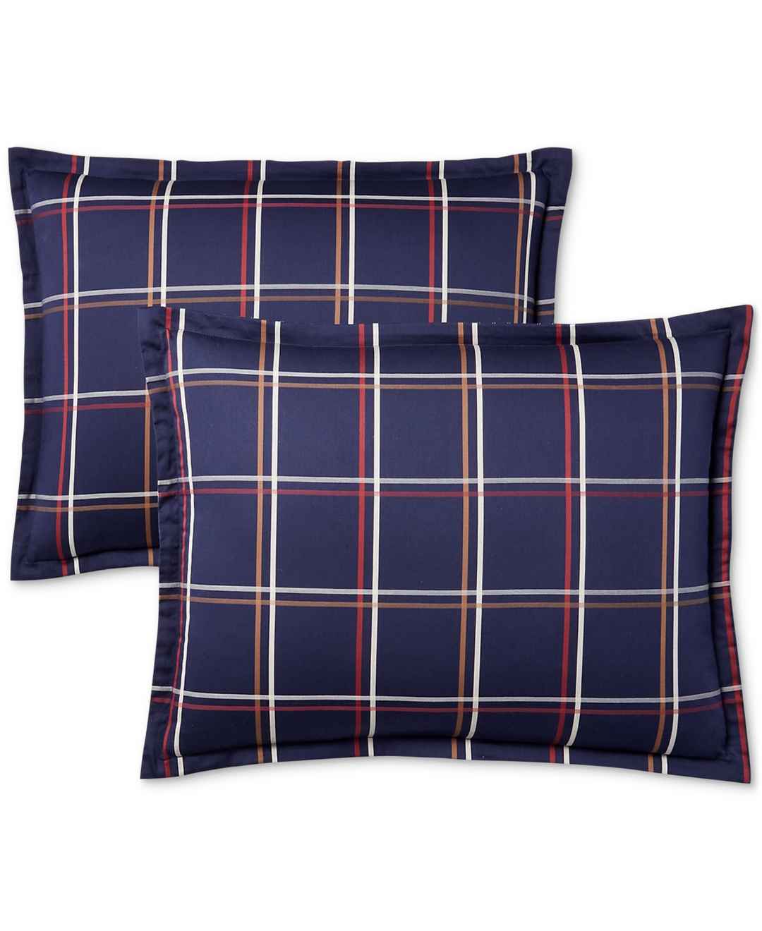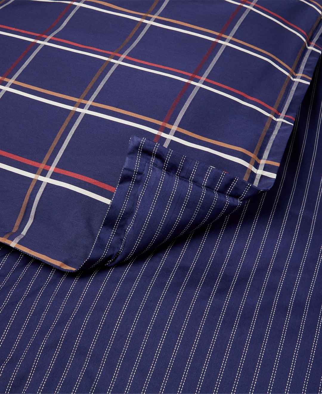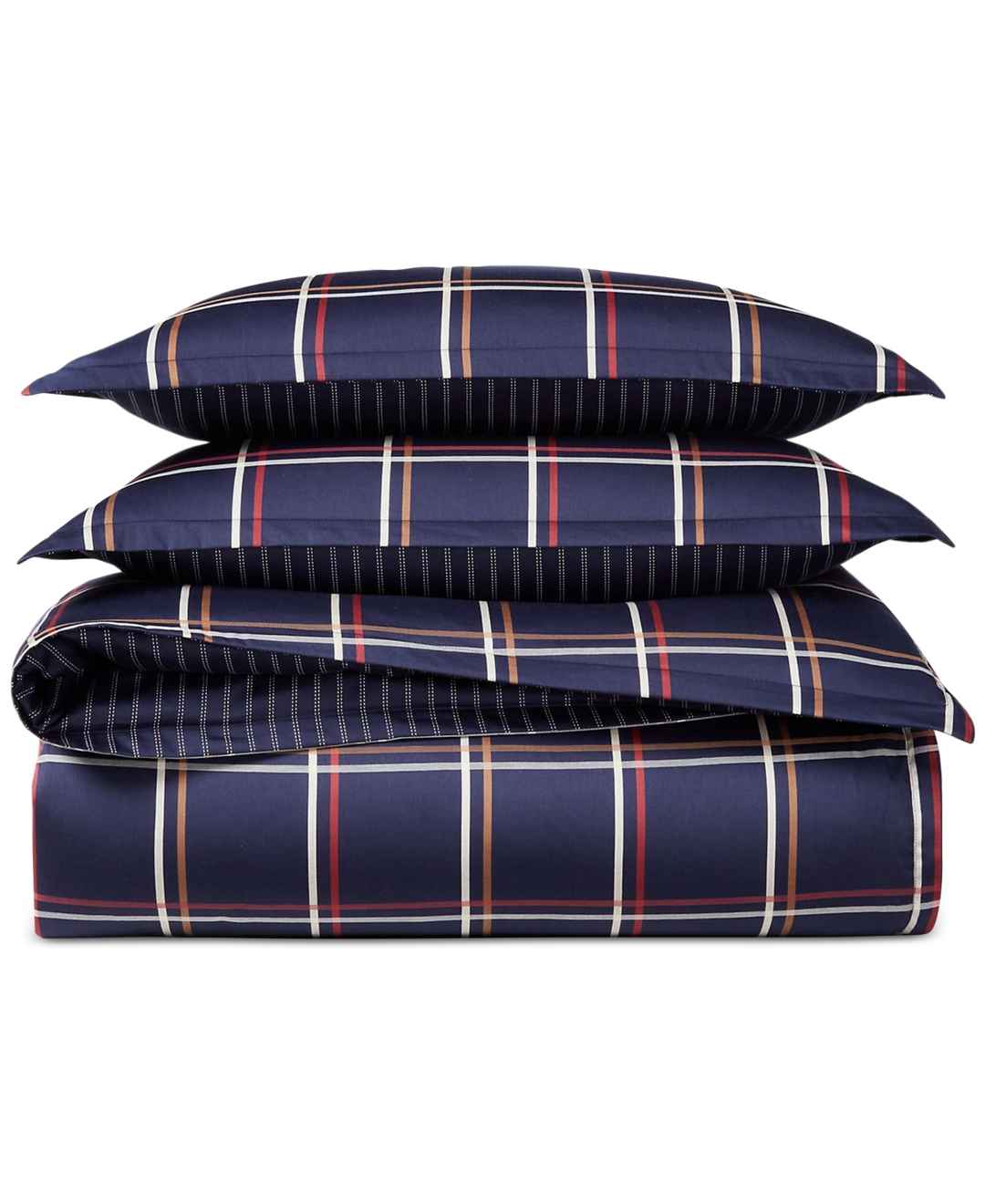 Recalling classic menswear patterns, the Collier Duvet Cover Set from Lauren Ralph Lauren brings together windowpane plaid, paisley, and pinstripes to create timeless style.