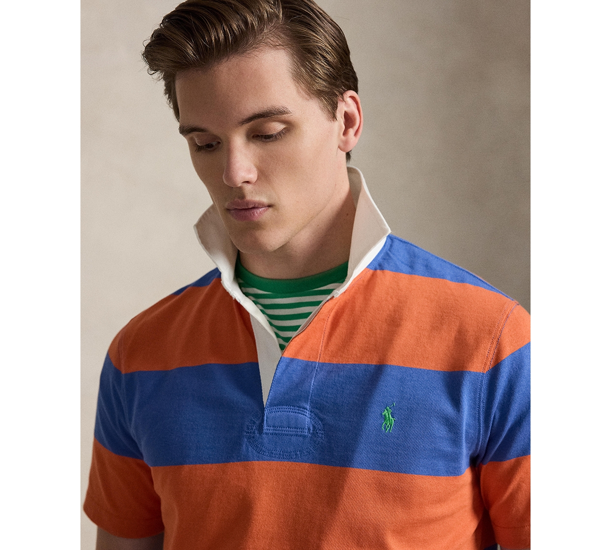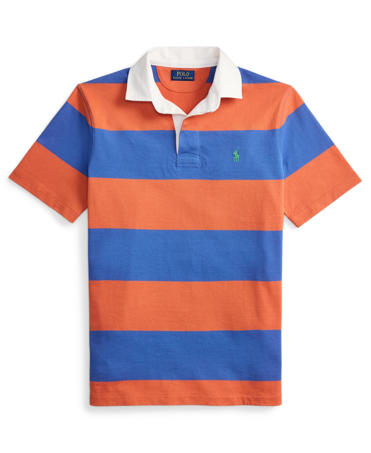 Embrace classic sporty style with this Polo Ralph Lauren shirt featuring a traditional twill rugby collar and a three-button placket with rubber buttons. The short sleeves and vented hem enhance comfort and breathability, while the embroidered Pony at the left chest adds a touch of sophistication.