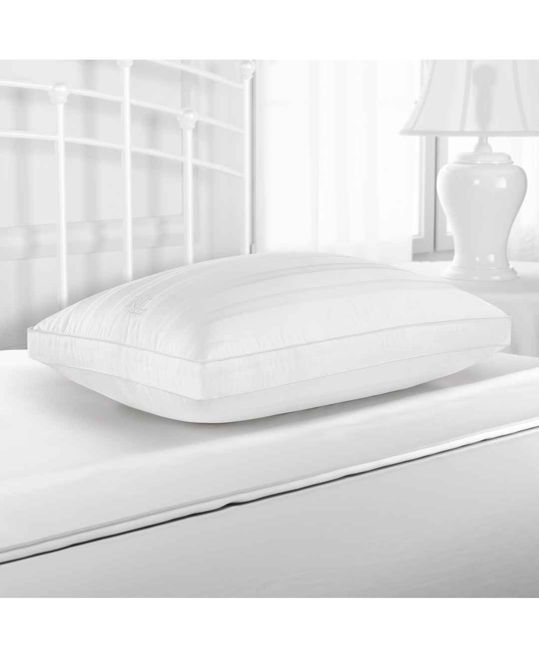Enjoy sumptuous sleep with the Down Illusion Firm Density Down Alternative Pillow from Lauren Ralph Lauren, featuring cozy comfort and a white ground.