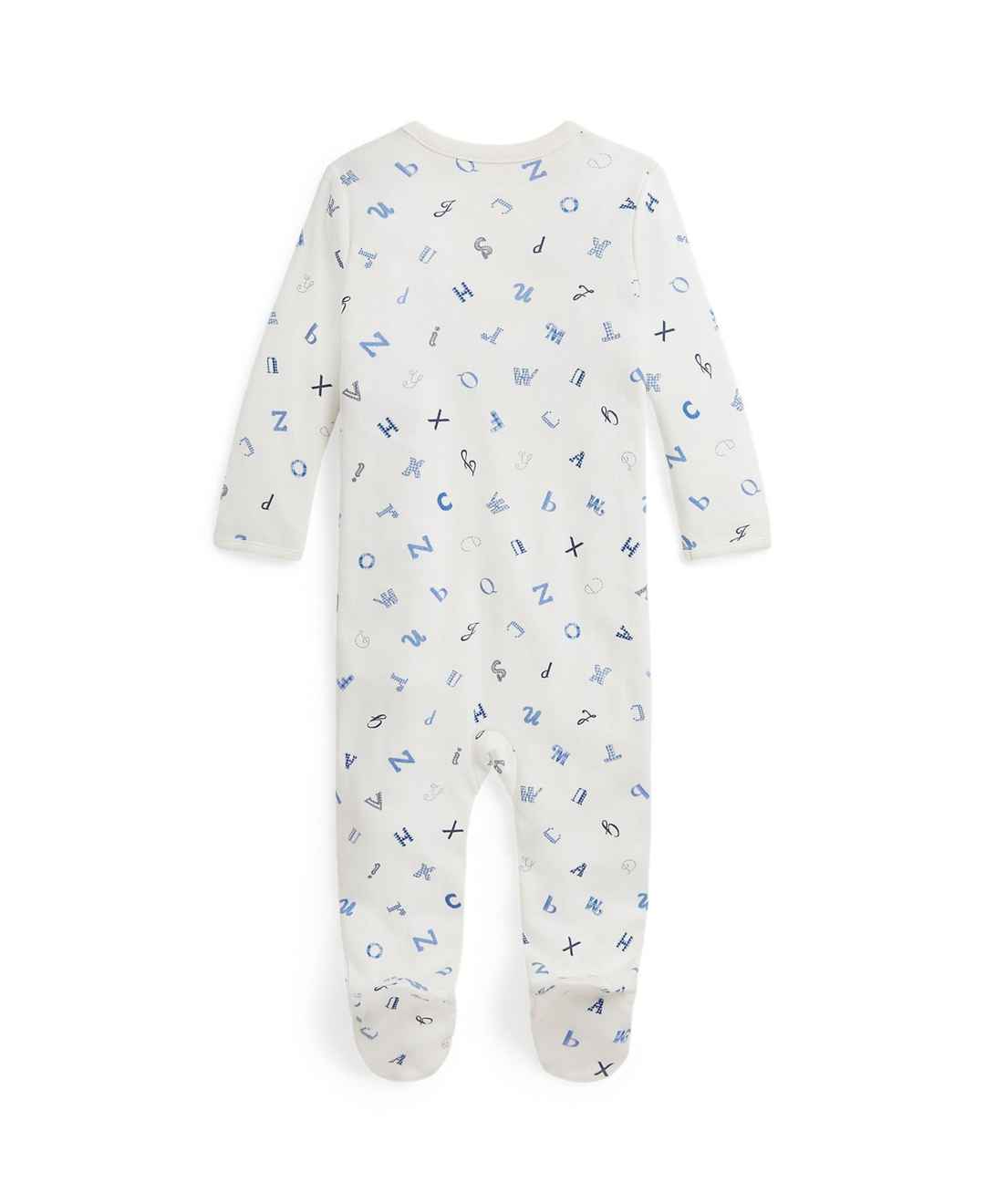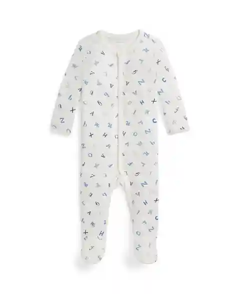 Rustic charm meets cozy design in this alphabet-print footed coverall from Polo Ralph Lauren. The cotton construction and full buttoned placket to the hem make dressing and changing simple.