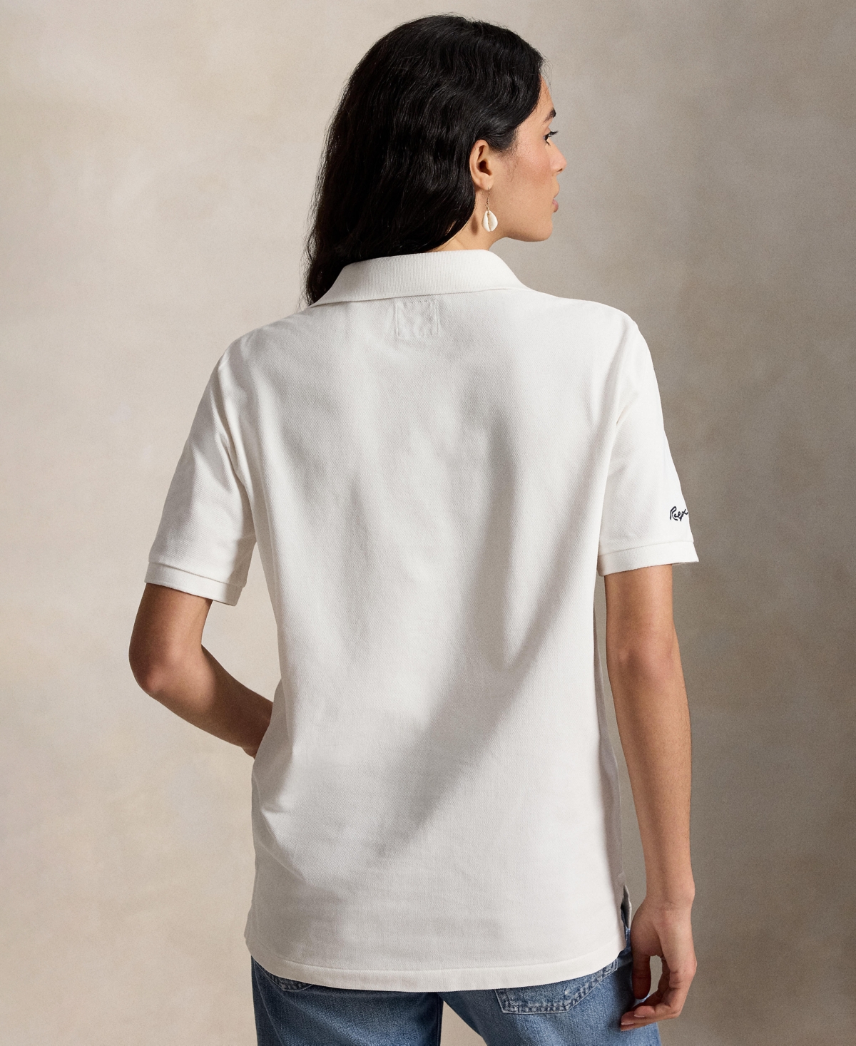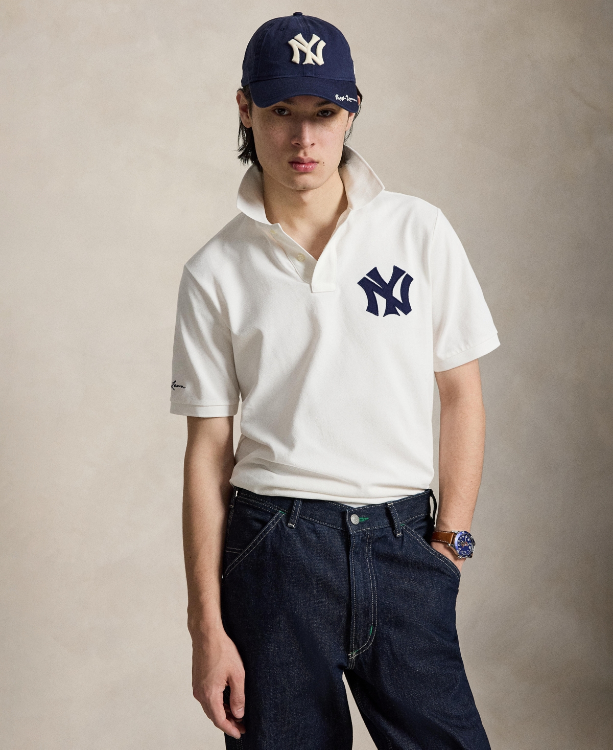 Celebrate heritage sport style in this Polo Ralph Lauren iconic mesh polo shirt detailed with a New York Yankees logo patch and signature embroidered Pony. A ribbed collar, two-button placket, "Ralph Lauren" script at the right sleeve, and vented hem complete the classic-fit silhouette.