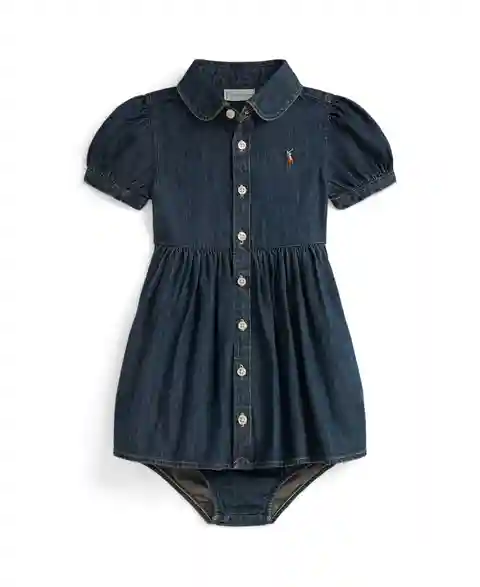 Polo Ralph Lauren Baby Girls' Embroidered Fit and Flare Shirtdress and Bloomer, 2-Piece Set - Blaine Wash Blue