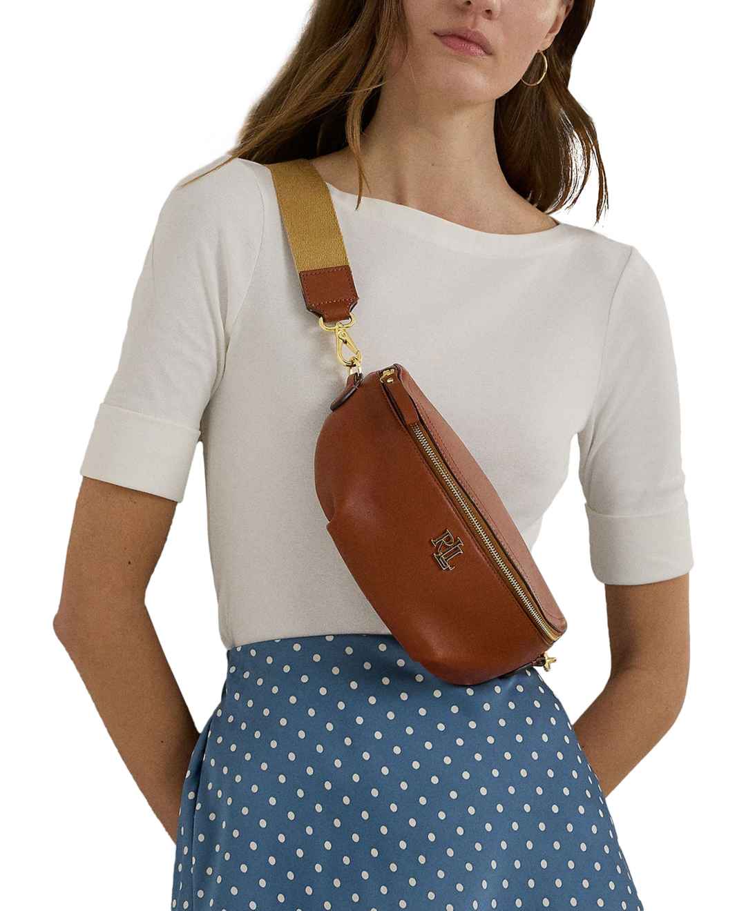 A luxurious hands-free accessory, the Marcy belt bag is crafted supple full-grain leather, which is distinguished by its naturally smooth finish. Its spacious silhouette offers ample storage for your go-to items, while an "Lrl" metal logo at the front adds a signature Lauren Ralph Lauren finish.