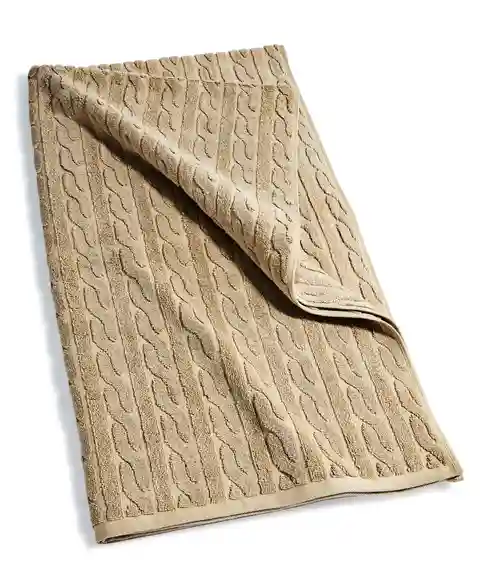 Designed with luxury and durability in mind, the Sanders Cable Bath Towel from Lauren Ralph Lauren features a sculpted cable pattern and exceptional absorbency and plushness.
