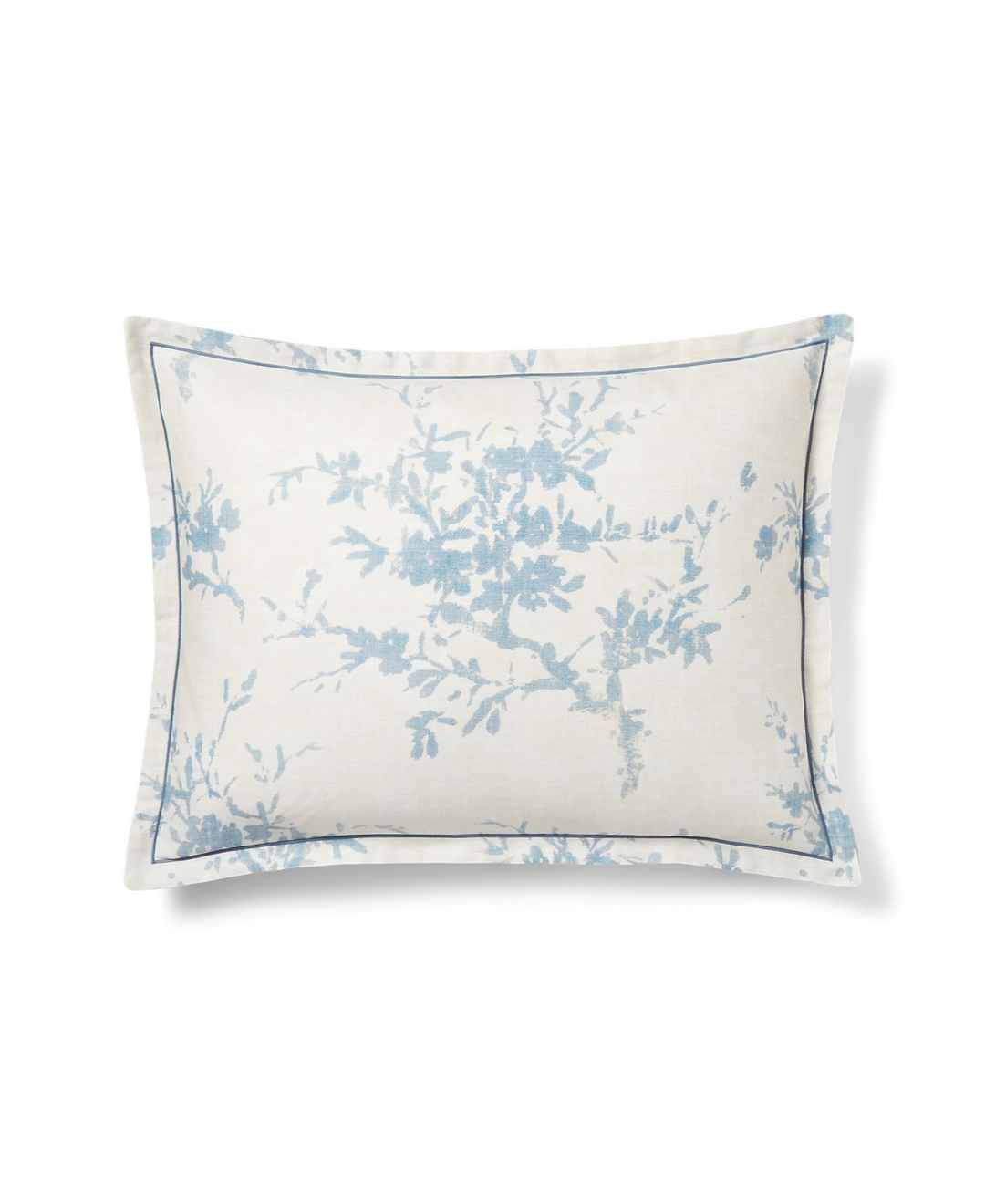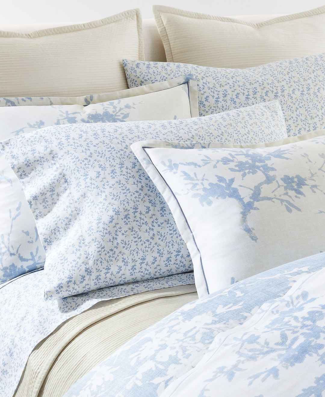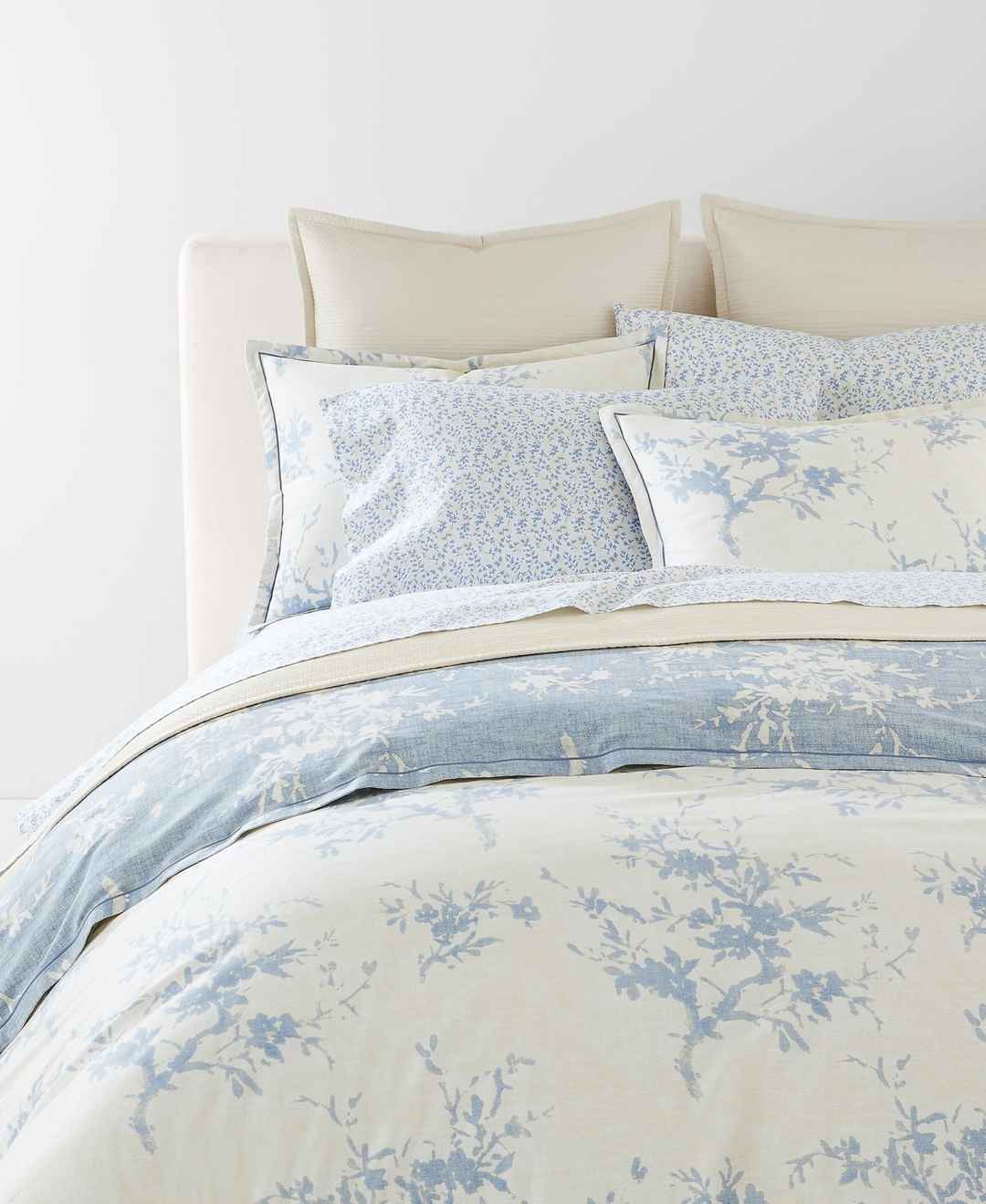 With its painterly botanical motif rendered in tonal blues and deep indigos, the Eva comforter can be mixed and matched with a variety of colors and textures to create a layered bed with distinctive style.