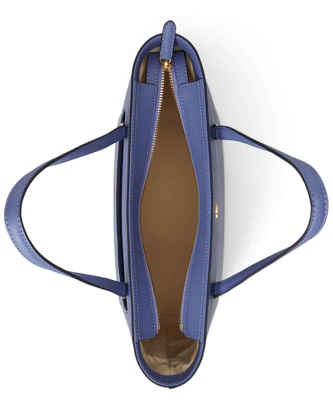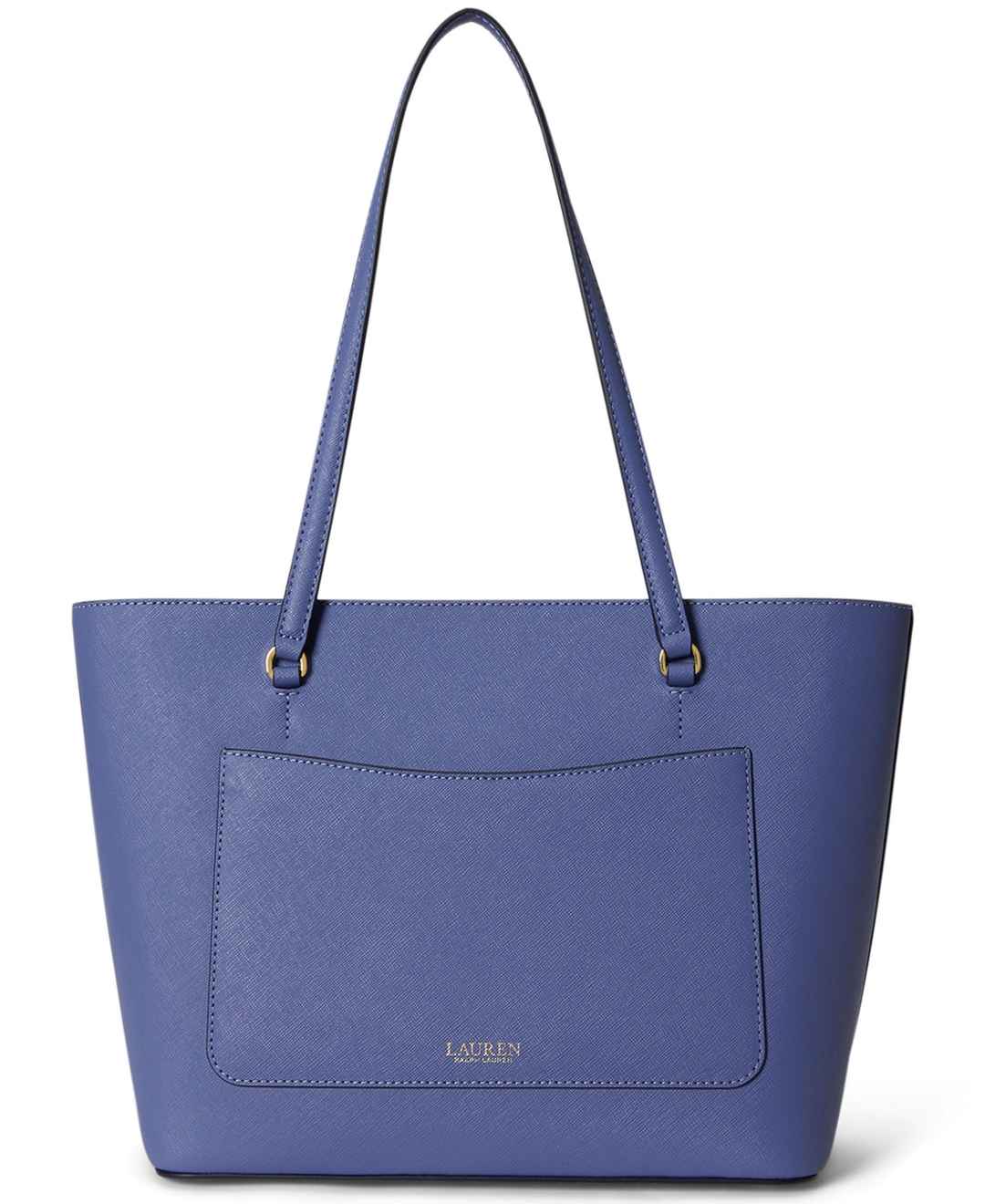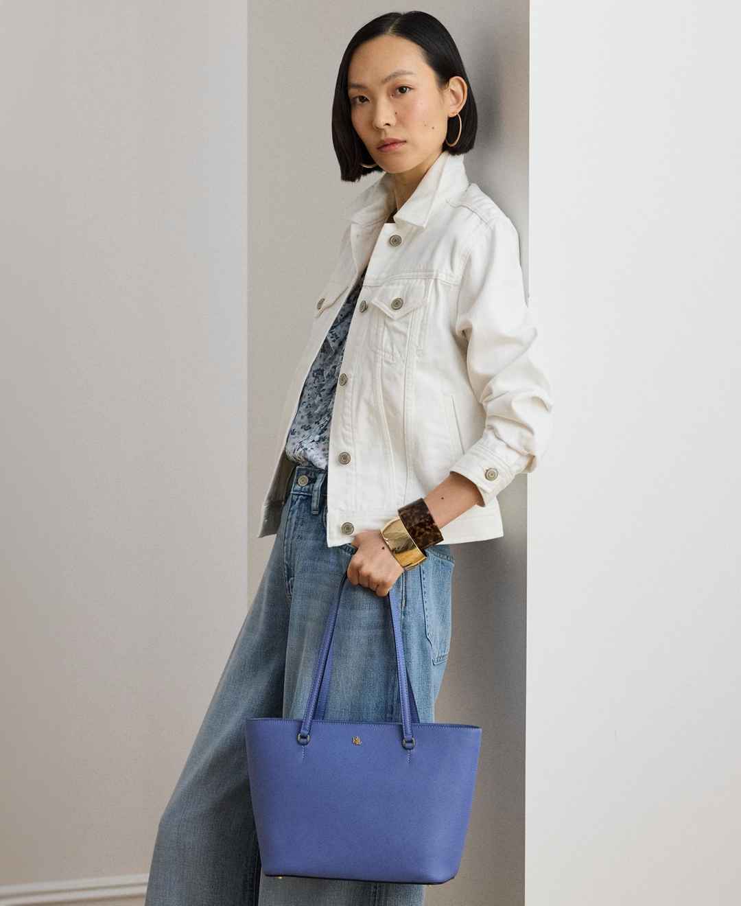 The Karly tote is crafted with crosshatch leather for subtle texture and refined style. Detailed with a metal Lrl logo at the front for a signature Lauren Ralph Lauren touch.