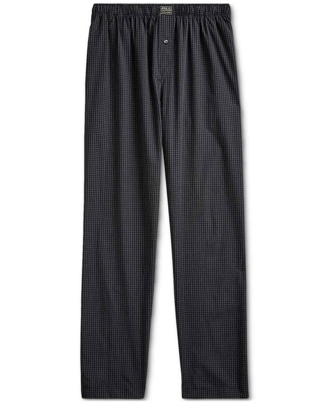 With room and comfort to spare, this cozy pajama pant will become an essential member of your wardrobe. Small plaid pattern all over. Elastic waistband with single button fly. Logo patch applique at center waistband.