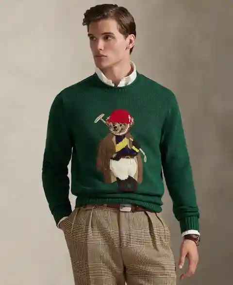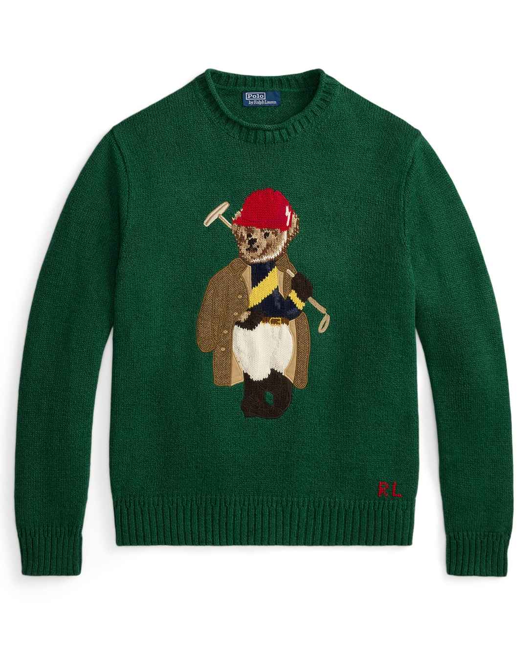 Show playful sophistication with this Polo Ralph Lauren sweater, featuring a rolled neckline and long sleeves with rib-knit cuffs. Polo Bear intarsia knit at the center front, embroidered details and Rl hand-embroidered above the left hem add signature charm.