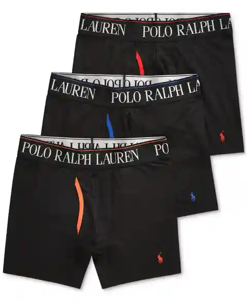 Polo Ralph Lauren Men's 3-Pack. 4-d Flex Cool Microfiber Boxer Briefs - Black/Orange/Green