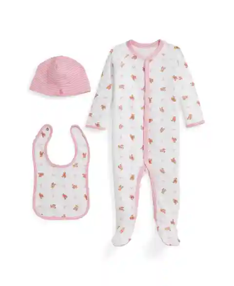 Home Ralph Lauren Polo Ralph Lauren Baby Boys 3-Piece Coverall, Bib and Beanie Gift Set - White Pink Multi
