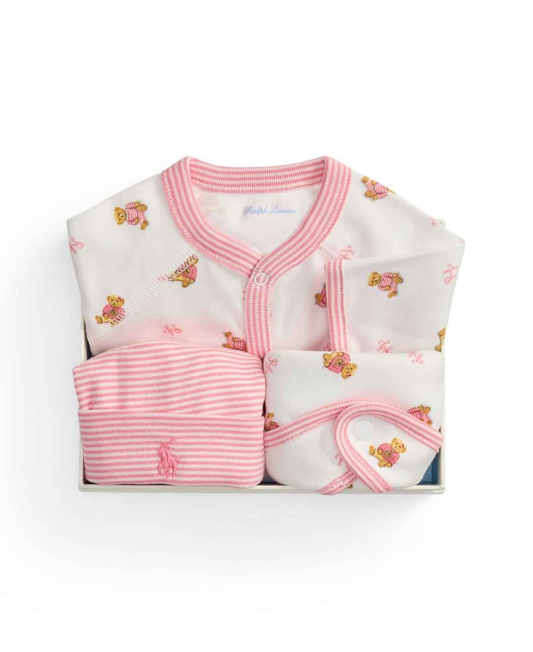 Thoughtfully designed for the littlest ones, this Polo Ralph Lauren 3-piece gift set includes a cozy footed coverall with a crewneck and raglan sleeves, a coordinating bib, and a matching beanie hat, each crafted with signature style and gentle comfort in mind. Great for gifting, it brings timeless ...more