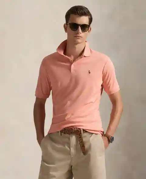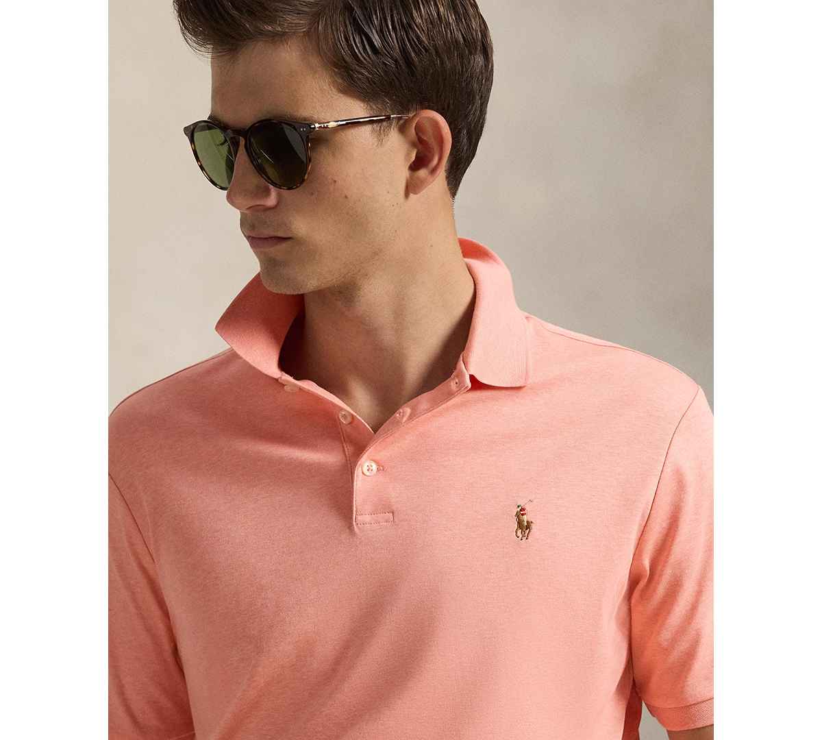 Men's Slim-Fit Soft Cotton Polo Shirt - Soft Orange Heather