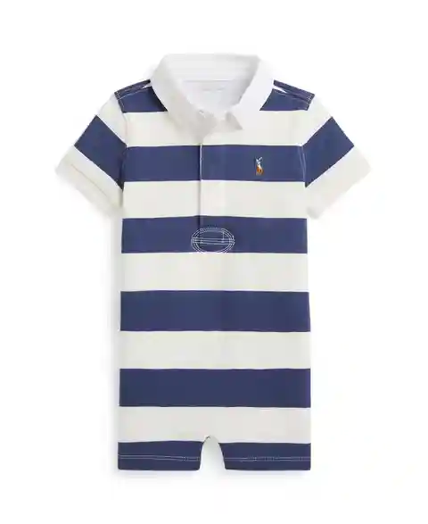 Drawing inspiration from an iconic rugby shirt, this Polo Ralph Lauren shortall features bold stripes and a twill collar. Rubber-finished buttons and a three-button placket enhance its sporty aesthetic.