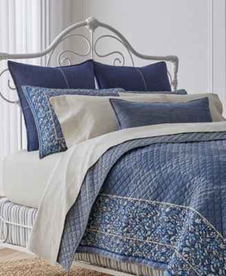 Contemporary floral scrolls trim a bold patchwork checkerboard, bringing a fresh look to the soft, diamond-stitched Penwood quilt from Lauren Ralph Lauren.