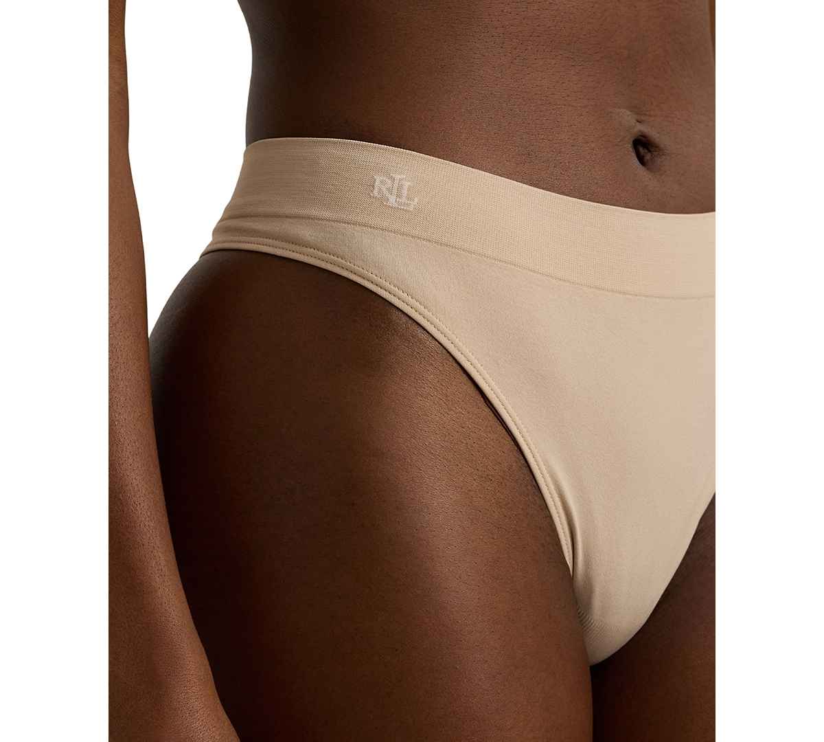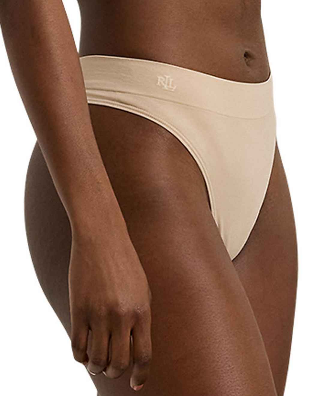 Accented by an "Lrl" knit-in logo at the hip, this seamless thong from Lauren Ralph Lauren is made with breathable stretch jersey for a soft hand. Style #4L0010