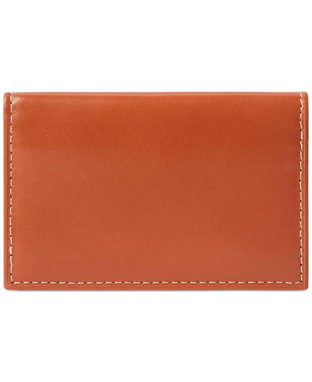 Perfect for the minimalist, this slim folding card wallet from Polo Ralph Lauren is made from burnished leather and designed with an Id window slot and two card slots.