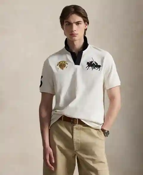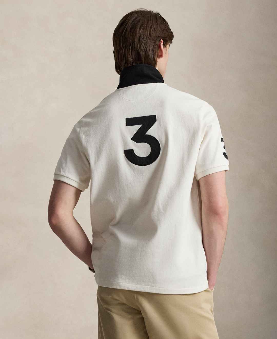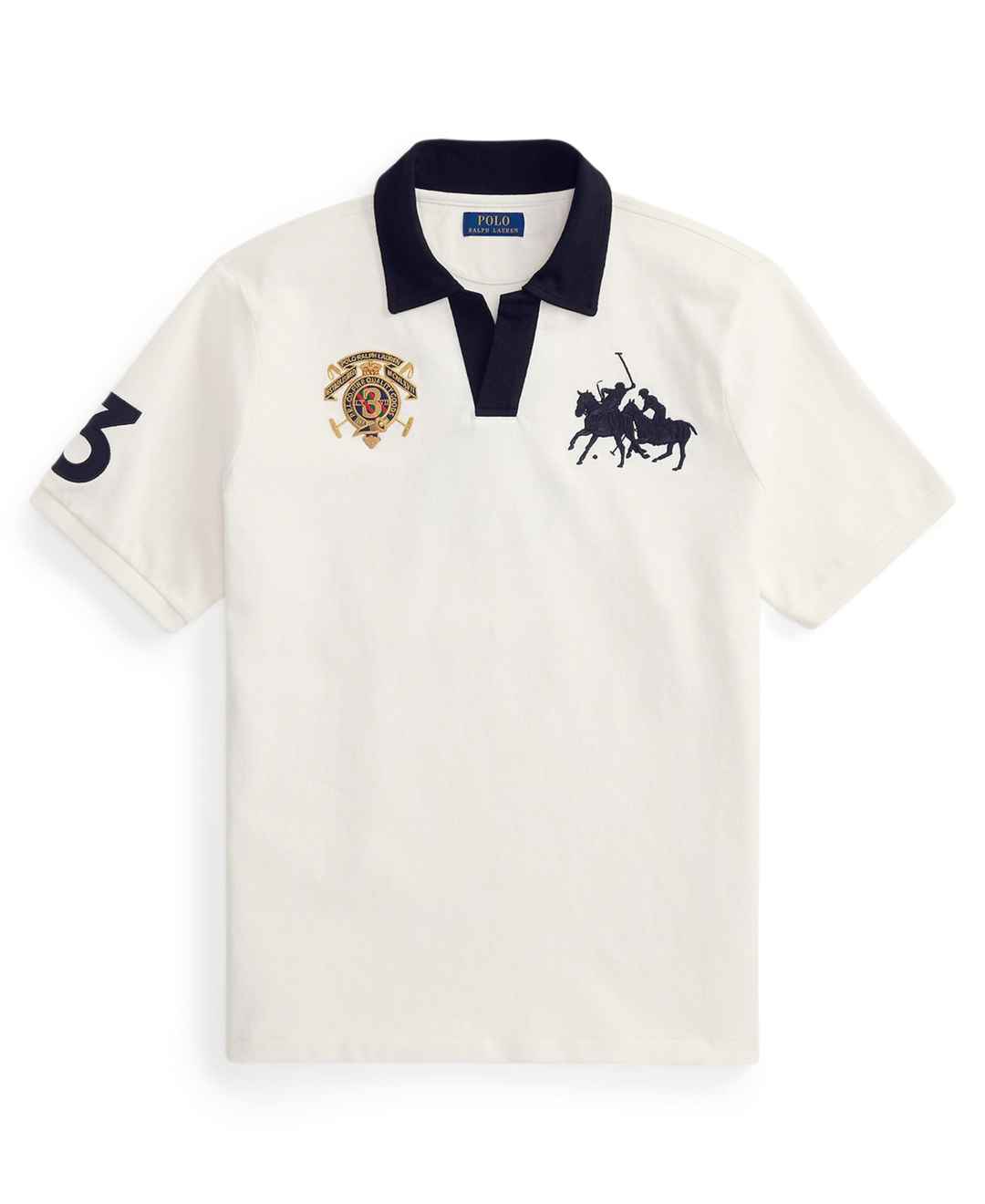 Sporty and comfortable, this Polo Ralph Lauren shirt showcases an embroidered 3 patch, signifying the field captain's number in polo. It features a Johnny collar and short sleeves with ribbed armbands, maintaining the timeless style the brand is known for.