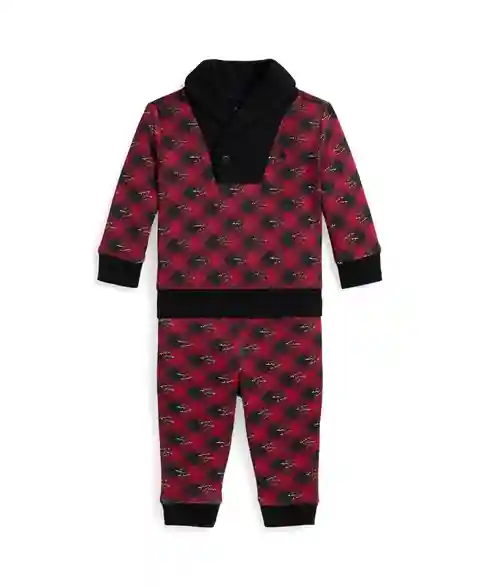 Cute and fashionable, this Polo Ralph Lauren 2-piece set features a charming ice skate and buffalo check plaid print. The pull-on top showcases a signature embroidered Pony on the left chest and a ribbed shawl collar. The coordinating pants have a waistband and leg openings for a comfy fit.