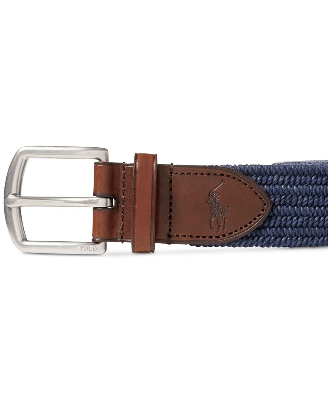With vachetta leather trim and rugged waxed cotton, this braided stretch belt from Polo Ralph Lauren brings a touch of texture to everyday looks.