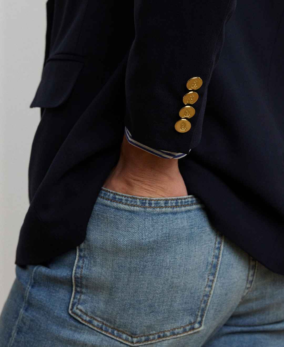 A timeless essential, this blazer is made with stretch-infused wool crepe for a polished look and a comfortable feel. A double-breasted silhouette, princess seams, and peak lapels amplify its sophisticated sensibility.