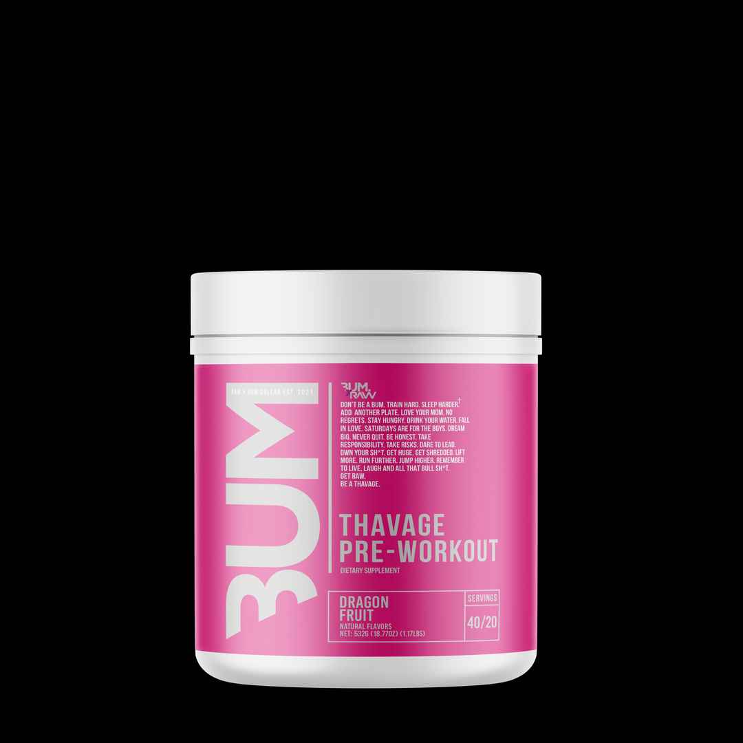 Bum. X Raw - Thavage Pre-Workout - Dragon Fruit Champion Mentality. 40/20 Servings Gmp Manufactured Third-Party Lab Tested | Raw Nutrition Thavage Pre-Workout - Dragon Fruit (40 Servings)