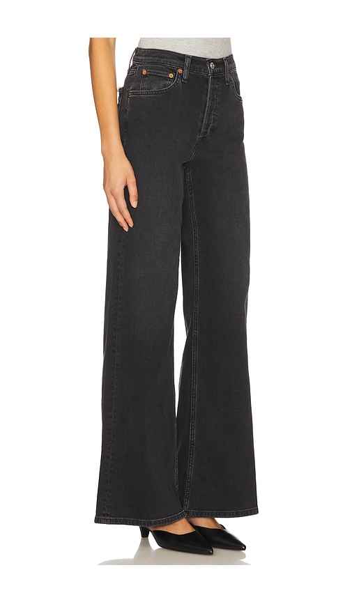 RE/DONE Originals High Rise Wide Leg in Black. - size 25 (also in 27, 31, 32) RE/DONE Originals High Rise Wide Leg in Black. - size 25 (also in 27, 31, 32) Self: 95%cotton 4% elasterell-p 1% spandex Lining: 65% polyester 35% cotton. Made in Mexico. Machine wash cold. Front button fly closure. 5-pock...more