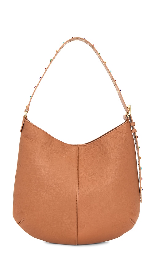 Rebecca Minkoff Naomi Hobo in Tan. Rebecca Minkoff Naomi Hobo in Tan. Leather with leather lining. Magnetic top button closure. One main compartment. One interior slip pocket. Adjustable shoulder strap. Measures approx 14.5 W x 11.5 x H x 0.5 D Shoulder strap with a 11 drop. RMIN-WY1419. HS26SNMHOB....more