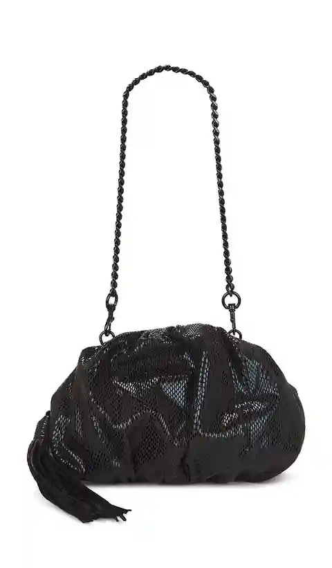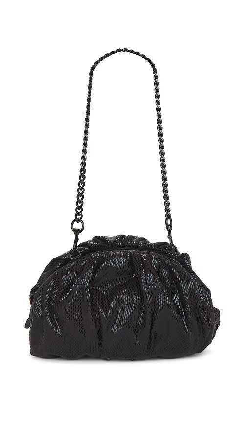 Rebecca Minkoff Ruched Small Clutch in Black. Rebecca Minkoff Ruched Small Clutch in Black. 95% Polyester, 5% Polyurethane. Top zipper closure. One main compartment. One interior zipper pocket. Removable chain strap. Measures approx 11 W x 7 H x 4 D. RMIN-WY1404. HF25MKICSM. Classic, stylish, and fu...more