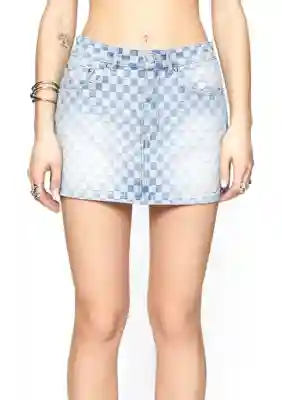 Flaunting a classic check print, the Cleo Denim Mini Skirt from Rebecca Minkoff pairs perfectly with a crop top. | Rebecca Minkoff Women's Cleo Denim Mini Skirt, 25