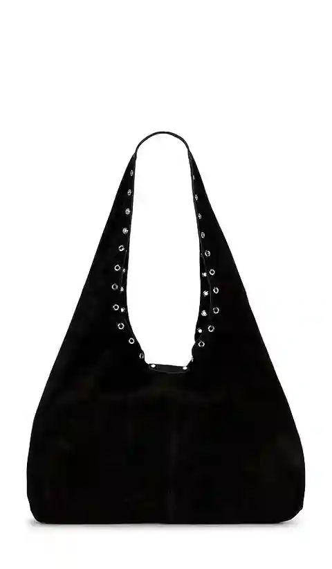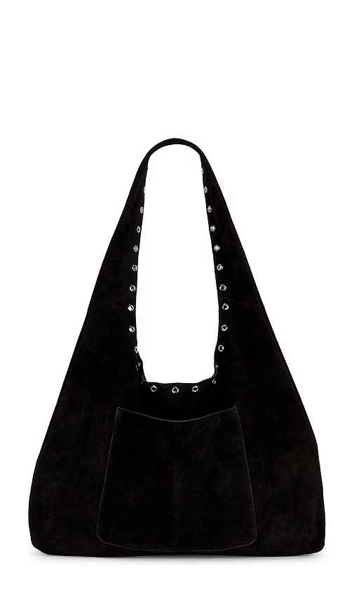 Rebecca Minkoff Industry Slouchy Hobo Bag in Black. Rebecca Minkoff Industry Slouchy Hobo Bag in Black. Suede exterior with suede lining. Top inner magnetic button closure. One main compartment. One inner slip pocket and one exterior slip pocket. Silver-tone accents. Dust bag included. Measures appr...more
