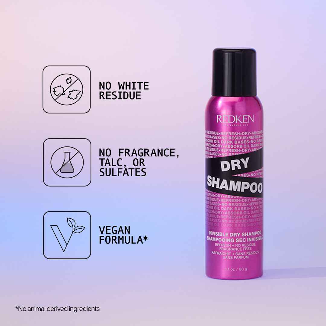 Redkens Invisible Dry Shampoo, formulated with Vitamin E and B5, features an invisible, fragrance-free formula that absorbs excess oil from the hair and eliminates the risk of product residue. BENEFITS Invisible formula ensures hair is free of all product residue Fragrance-free aerosol dry shampoo...more
