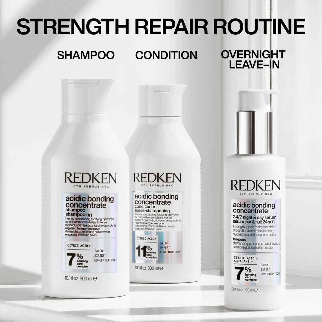 Street Inspired, Salon Perfected. Repair your hair with a giftable, limited-edition holiday gift set that includes Acidic Bonding Concentrate Shampoo (300ML), Conditioner (300ML) and 24/7 Night & Day Serum ($113 VALUE). BEST FOR: Damaged Hair All Hair Types & Textures Safe for Color-Treated & Che...more