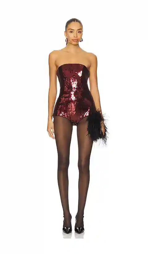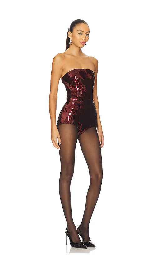 retrofete Estella Romper in Burgundy. - size L (also in M, S, XL, XS) retrofete Estella Romper in Burgundy. - size L (also in M, S, XL, XS) Shell: 94% polyester 6% spandex Lining: 100% polyester. Dry clean only. Hidden back zip closure. Structured bodice with non-stick silicone grip closure. Heavyw...more