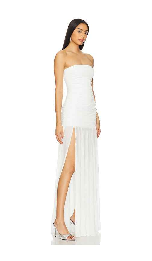 retrofete Adele Dress in White. - size L (also in M, S, XS) retrofete Adele Dress in White. - size L (also in M, S, XS) Self: 100% polyester Lining: 48% modal 47% cotton 5% spandex. Made in China. Dry clean only. Partially lined. Hidden side zip closure. Ruched bodice and side slit. Heavyweight mesh...more