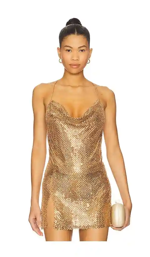 retrofete Shiloh Embellished Cami in Metallic Gold. - size XL (also in XXL) retrofete Shiloh Embellished Cami in Metallic Gold. - size XL (also in XXL) Self: 100% polyester Lining: 95% polyester 5% spandex. Hand wash. Fully lined. Sequin embellished mesh. Item not sold as set. ROFR-WS337. R-SS25-114...more