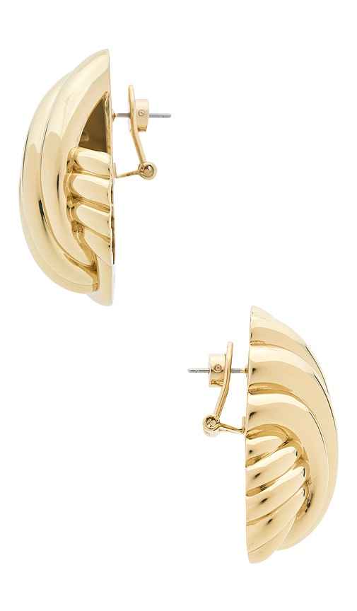 retrofete Jill Earring in Metallic Gold. retrofete Jill Earring in Metallic Gold. Gold-tone metal earrings. Post and back clasp closure. Measures approx 1.25 W x 1.75 H. ROFR-WL56. R-FW25-11937-00. Retrofete, launched in 2018 by co-founders Ohad Seroya and Aviad Klin, embodies the glamour and opulen...more