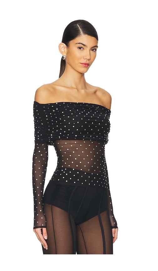 retrofete Oriana Mesh Top in Black. - size S (also in M, XL) retrofete Oriana Mesh Top in Black. - size S (also in M, XL) Self: 90% polyester 10% spandex Lining: 90% polyester 10% spandex. Made in CHina. Dry clean. Rhinstone embellishment throughout. ROFR-WS310. HL25-10743. Retrofete, launched in 20...more