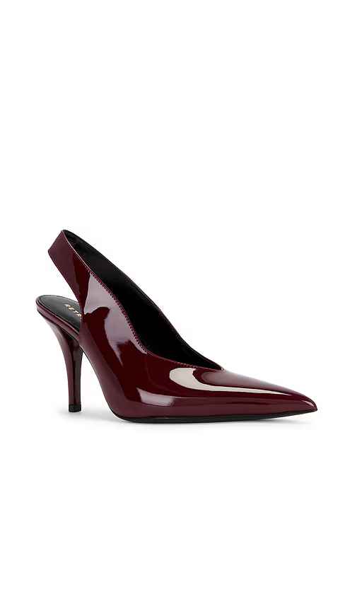 retrofete Maxime Slingback in Wine. - size 39 (also in 38.5, 39.5) retrofete Maxime Slingback in Wine. - size 39 (also in 38.5, 39.5) Patent leather uppe with manmade sole. Slingback styling with adjustable buckle strap. Leather footbed and lining. Pointed toe with stiletto heel. Approx 100mm/ 4 inc...more