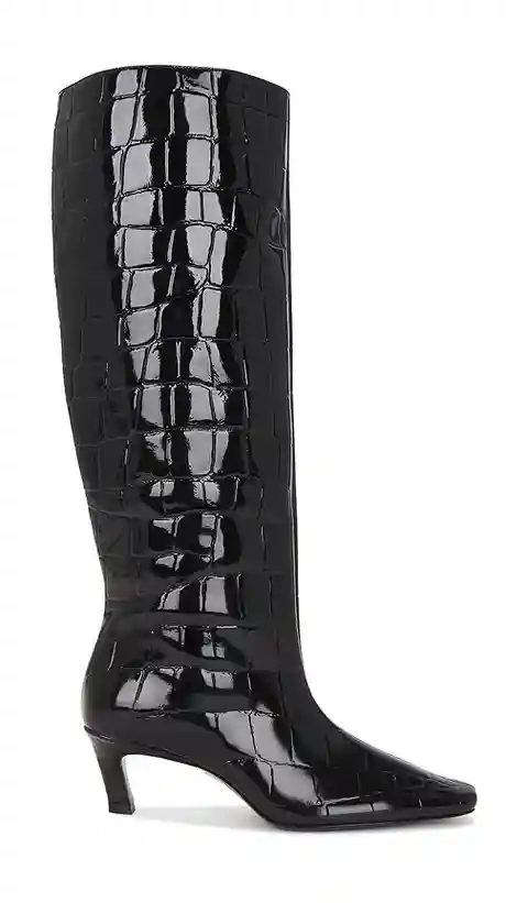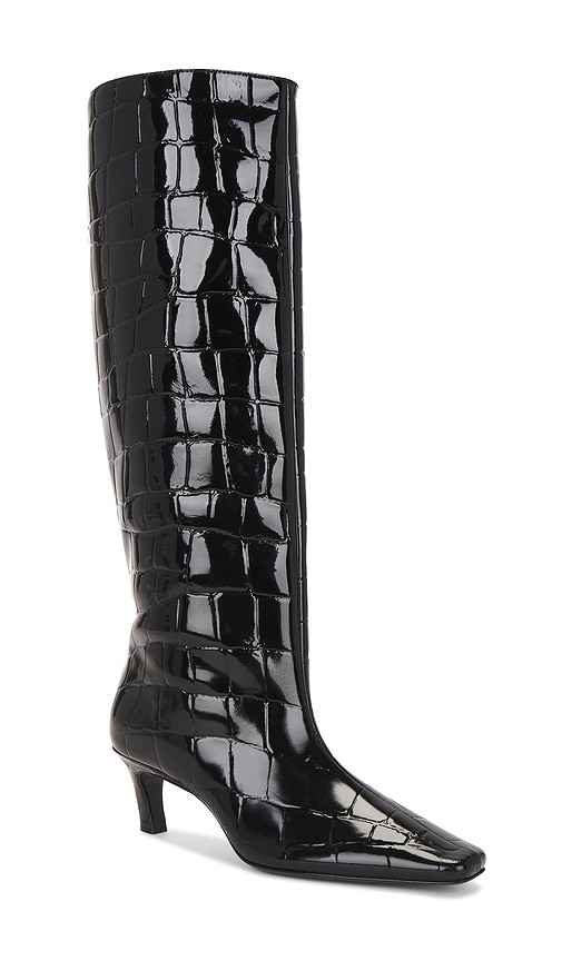retrofete Taliah Boot in Black. - size 36 (also in 37, 38, 39) retrofete Taliah Boot in Black. - size 36 (also in 37, 38, 39) Croc embossed patent leather upper with leather sole. Pull-on styling. Leather footbed and lining. Square toe. Approx 57mm/ 2.25 inch heel Approx 406mm/ 16 inch shaft Opening...more