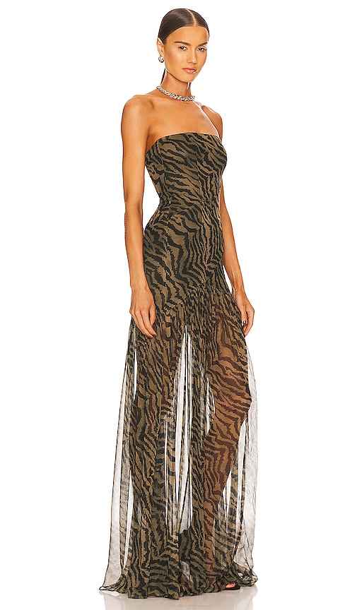 retrofete Nicole Dress in Brown. - size L (also in M, S, XL, XS) retrofete Nicole Dress in Brown. - size L (also in M, S, XL, XS) Self: 100% silk Lining: 97% polyester 3% spandex. Made in China. Dry clean only. Partially lined. Hidden side zipper closure. Front slit. Semi-sheer fabric. Neckline to h...more