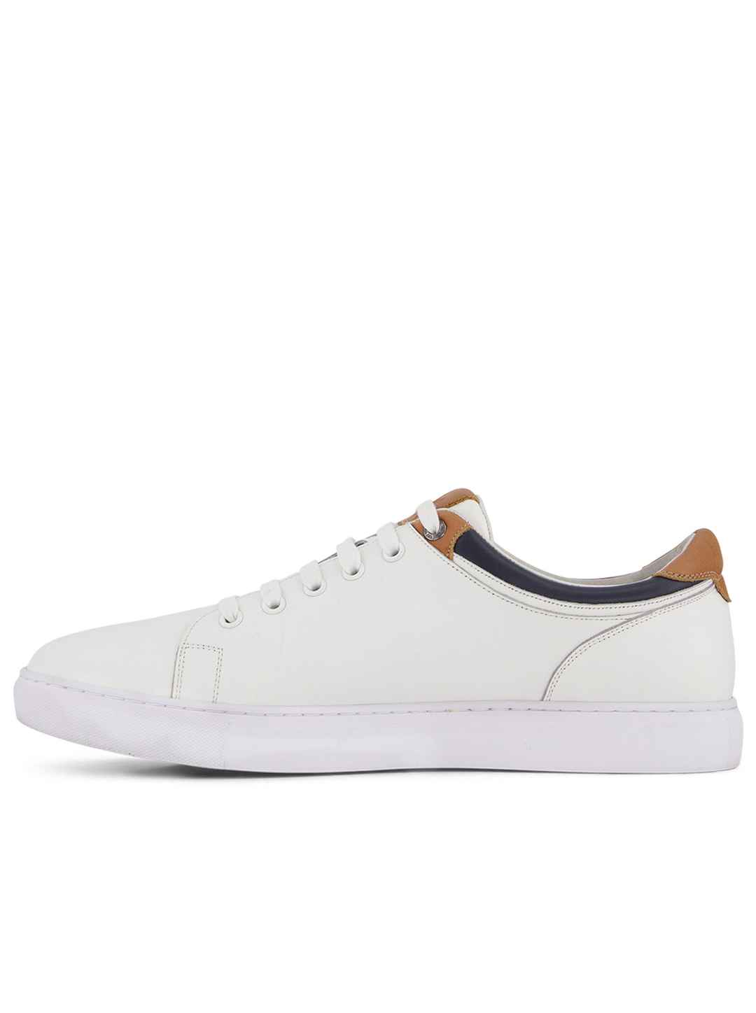 A pair of stylish sneakers in crisp white leather is the perfect finishing touch to any look. You'll love the subtle trim at the ankle. Dress them up or down depending on the occasion. Woven leather upper Molded non-slip sole Padded inner sole Lace-up Leather Spot clean Imported