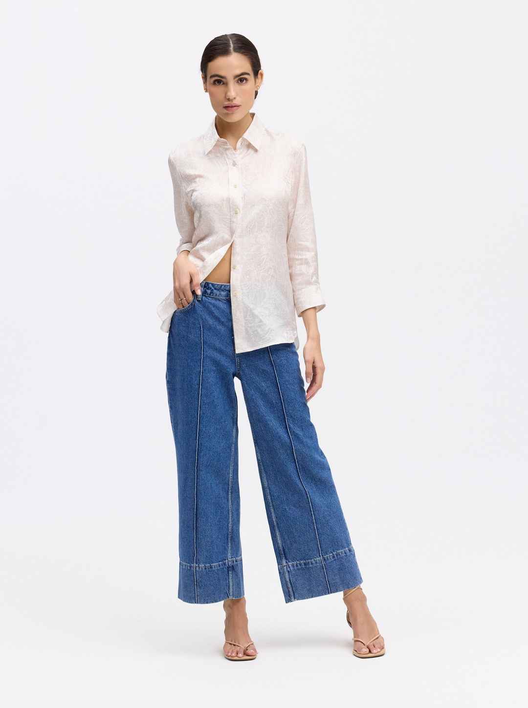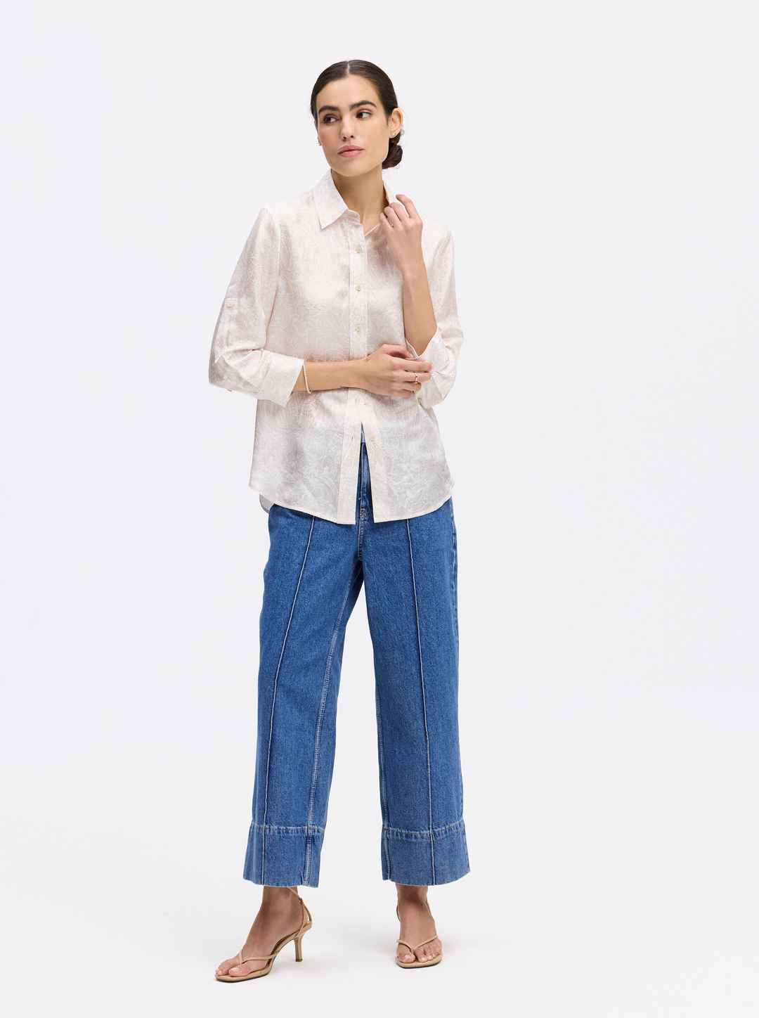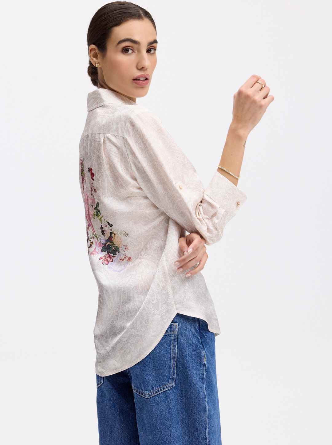 This Hadley shirt is all business in the front and party in the back. Cut from a sophisticated silk jacquard, this style features a snippet of a whimsical garden party. Notice the hand-embroidered details that elevate the lavender champagne flutes dripping in romantic florals. You'll love how the 3/...more