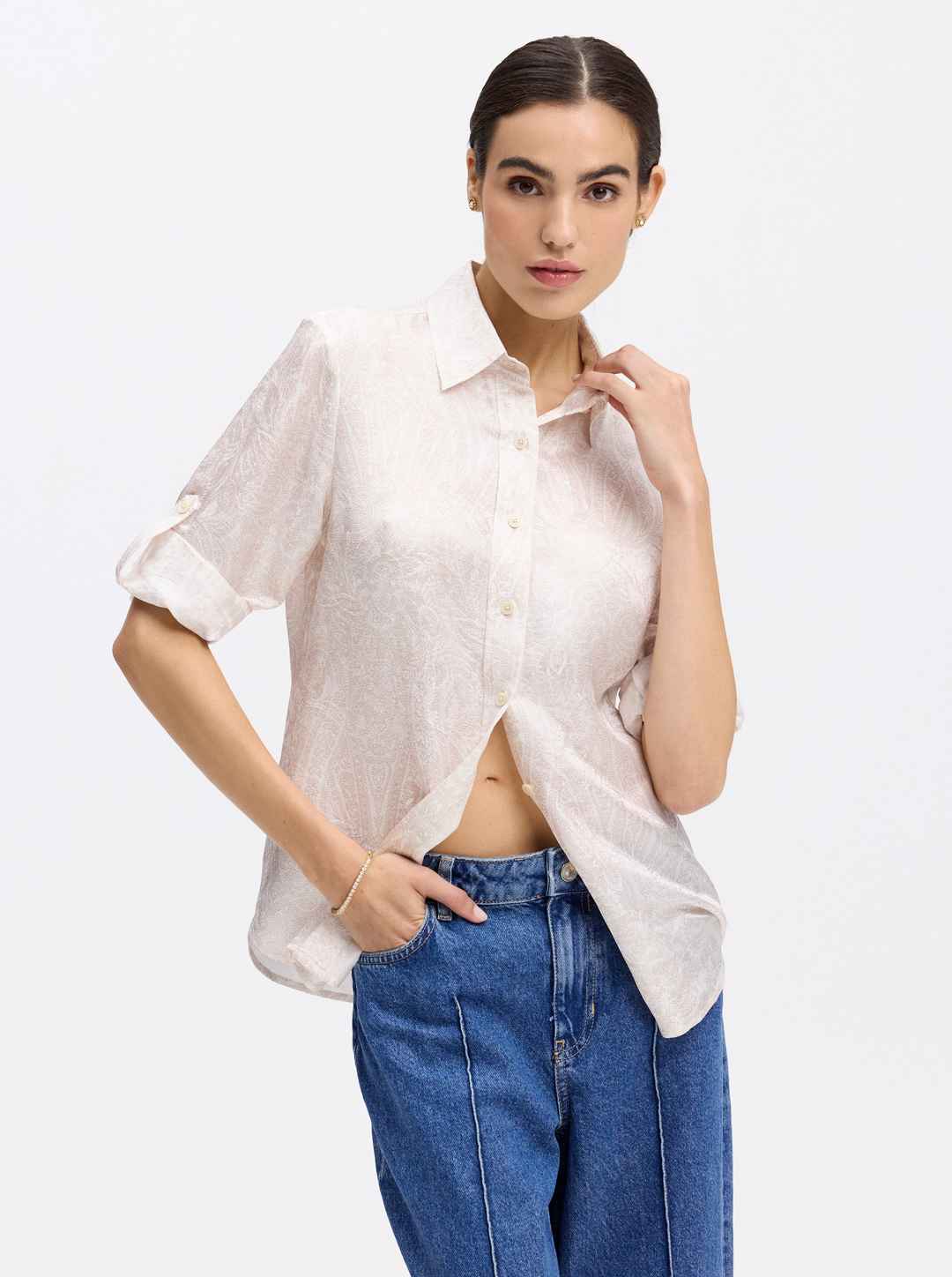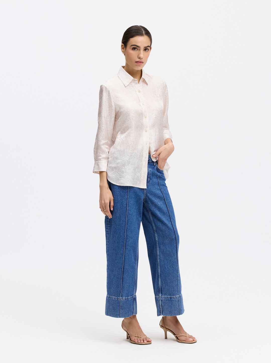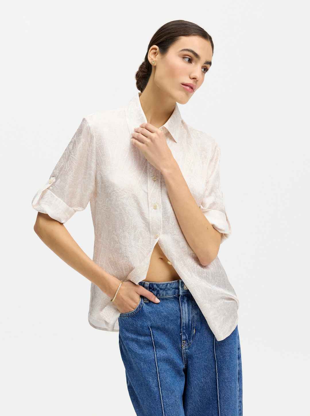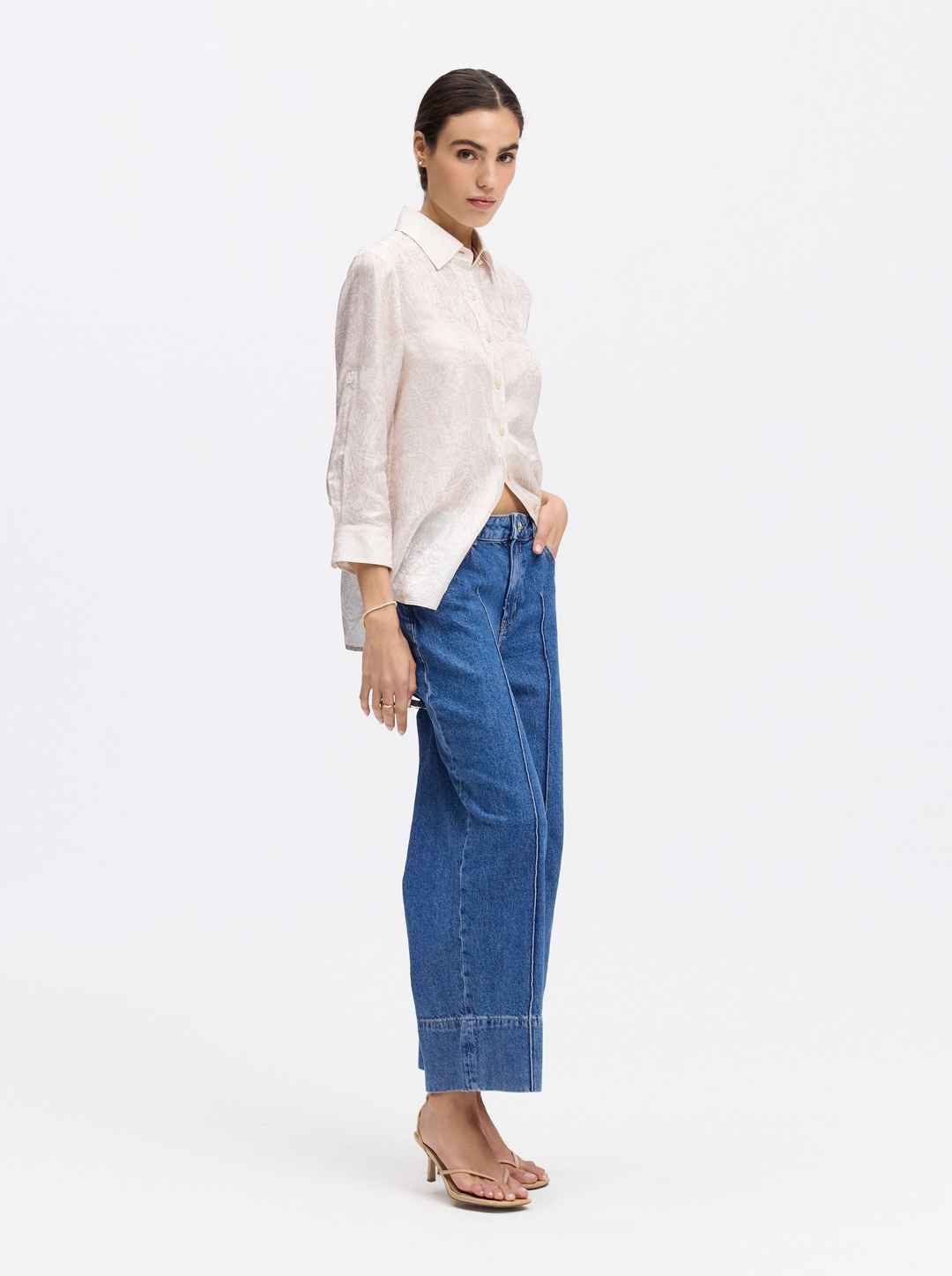 This Hadley shirt is all business in the front and party in the back. Cut from a sophisticated silk jacquard, this style features a snippet of a whimsical garden party. Notice the hand-embroidered details that elevate the lavender champagne flutes dripping in romantic florals. You'll love how the 3/...more