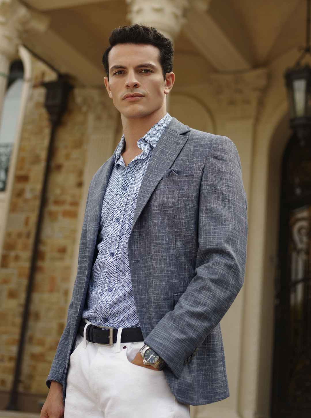 Don't miss the elevated details of the Jetset VII blazer. An elegant crosshatch exterior style provides a stylish contrast to the solid blue of the interior zip-out bib. Leave the bib in for an added layer or zip it out on warmer days. Inside, notice a sophisticated tonal paisley jacquard lining, th...more