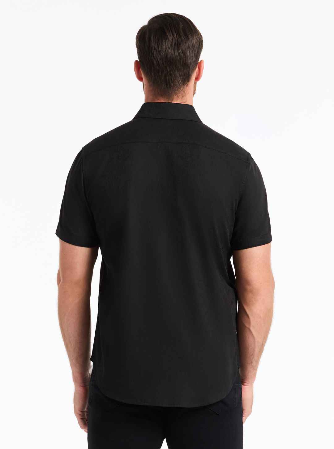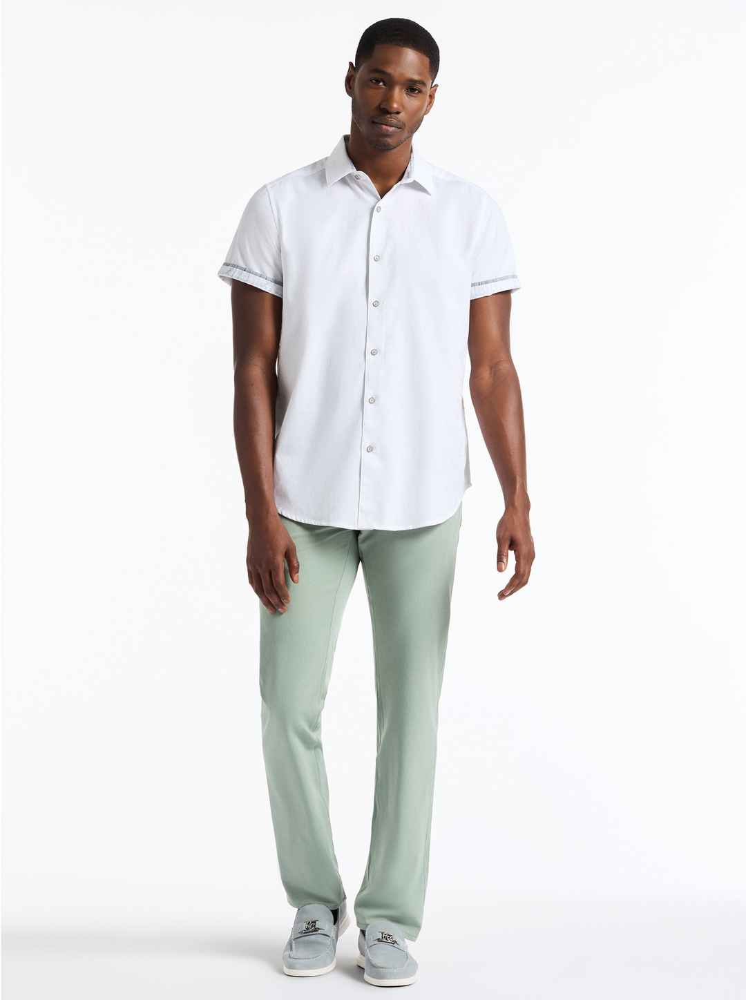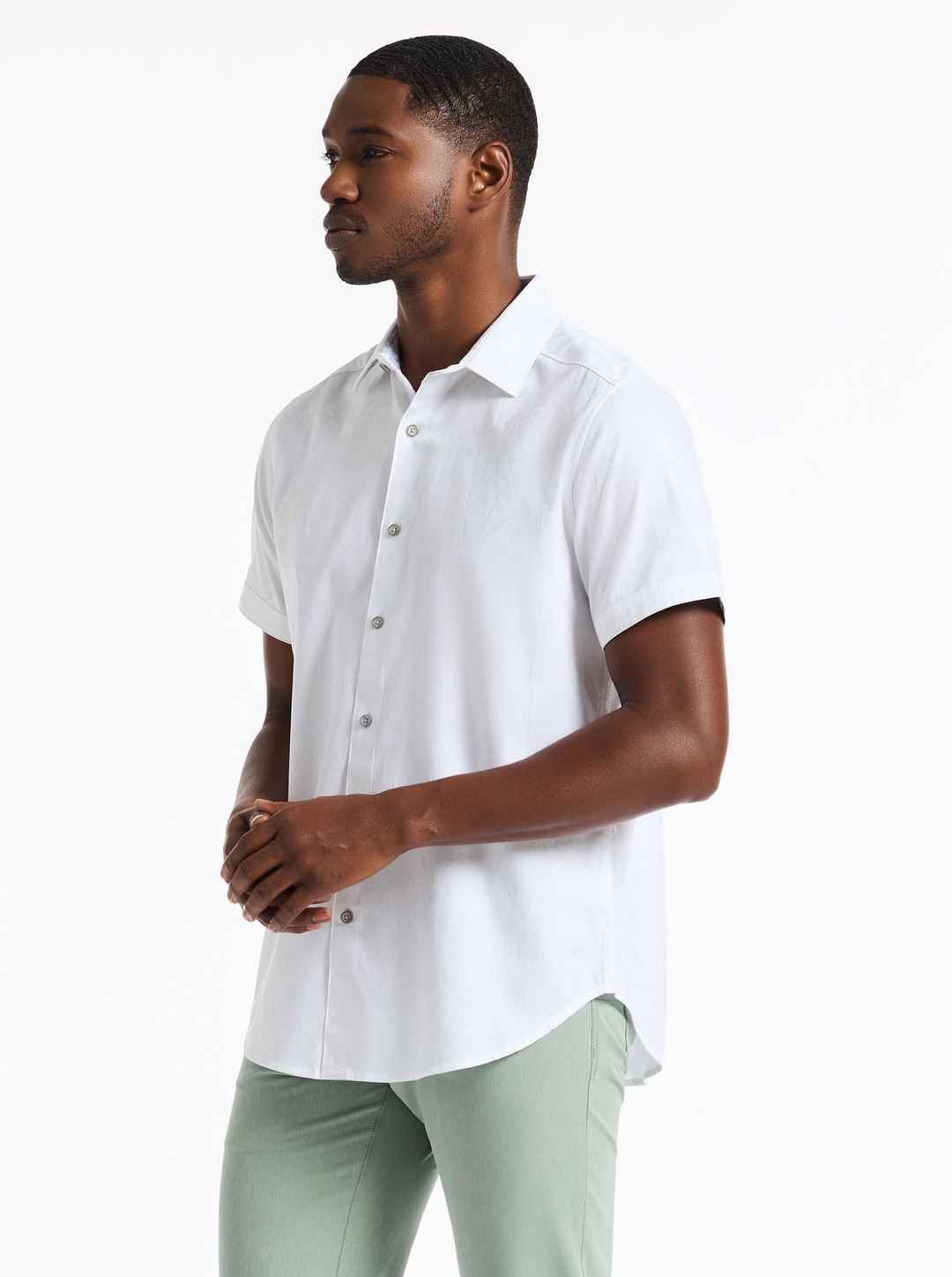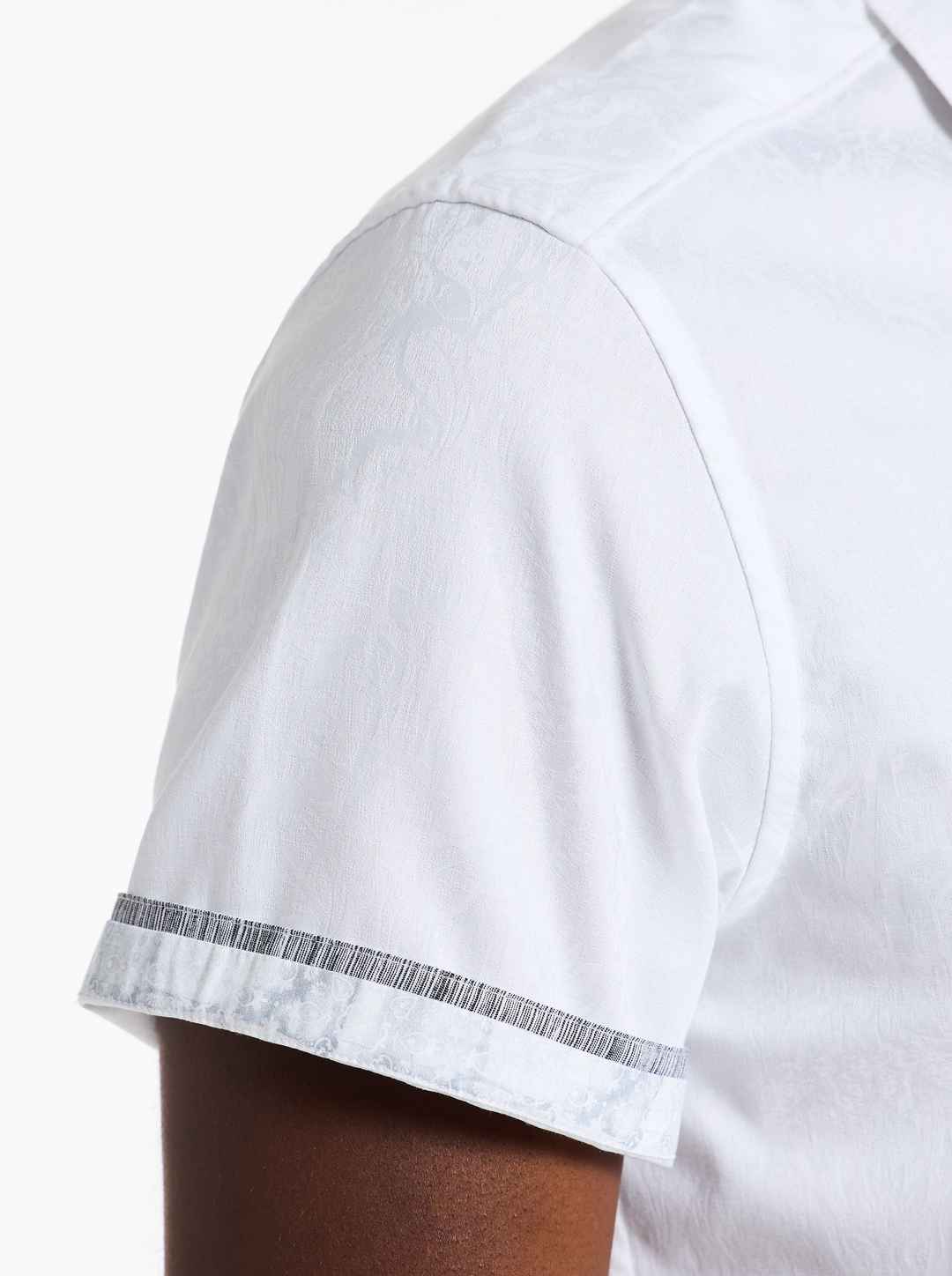 Youll love this RG best seller and Collector favorite. Now discover our newest essential jacquard, The Highland. A damask motif is celebrated on this stretch cotton jacquard short sleeve button down shirt. Flip the collar for a contrast print. Point collar Full button front Short sleeve Damask jacqu...more