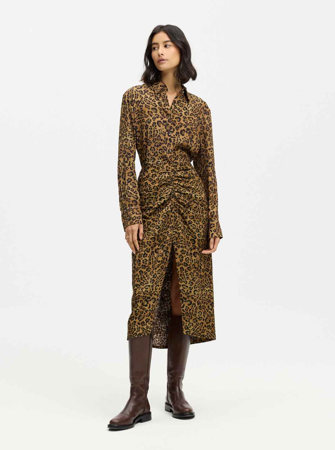 The Brynn skirt in a chic leopard print is the ultra-feminine piece you need this season. Notice how the pegged style becomes narrower towards the hemline for a flattering fit. With center front ruching and slit opening, this sexy ankle-length skirt is always an easy choice. Ruching at front center ...more