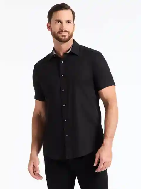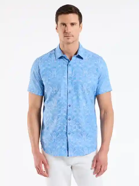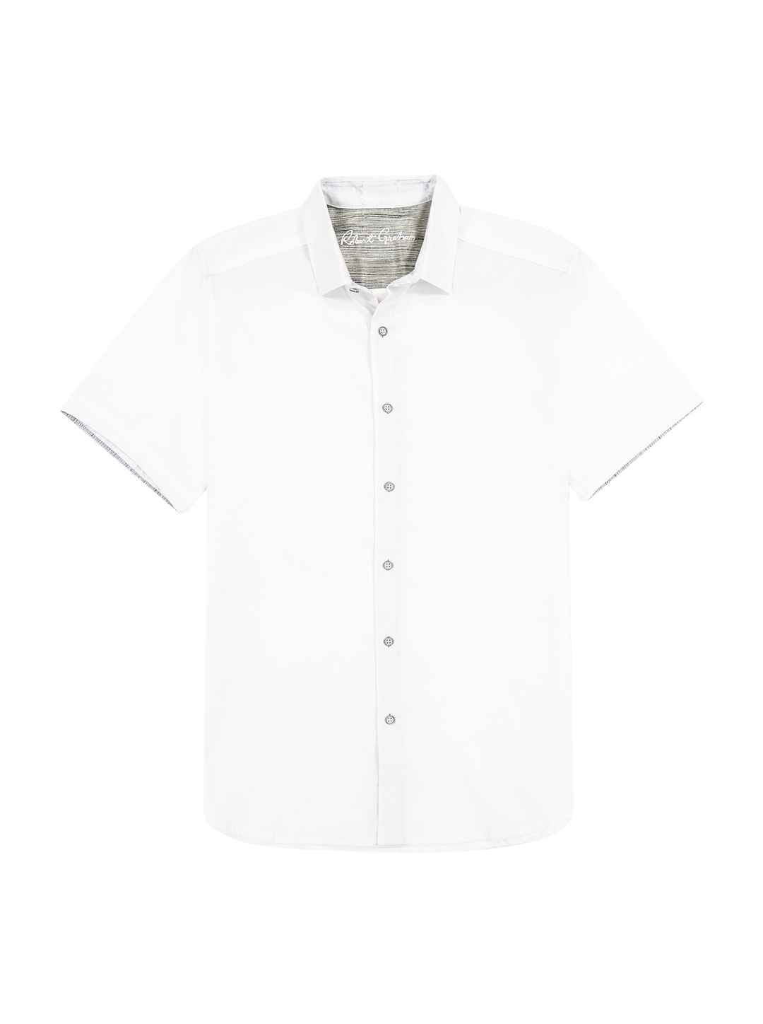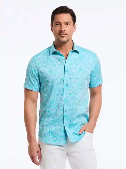 Youll love this RG best seller and Collector favorite. Now discover our newest essential jacquard, The Highland. A damask motif is celebrated on this stretch cotton jacquard short sleeve button down shirt. Flip the collar for a contrast print. Point collar Full button front Short sleeve Damask jacqu...more