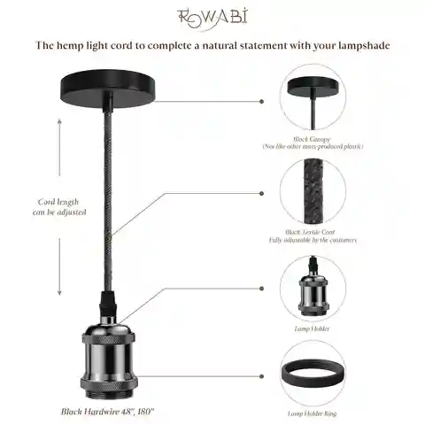 Swap shades in seconds with Rowabi's Black Hardwire Pendant Light Cord. This luxurious and affordable cord features a convenient ring that allows you to switch between lamp shades with ease. Personalize your lighting and update your space in no time. Available in a black finish and adjustable length...more