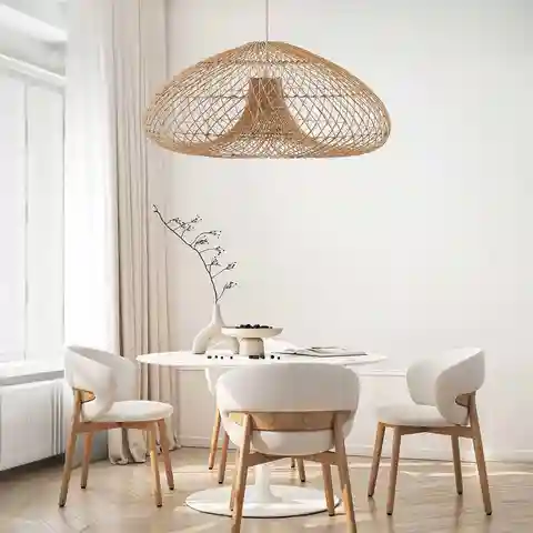 The Abyssal Rattan Light Pendant: A symbol of opulence, its funnel-shaped design, reminiscent of a cosmic black hole, is a beacon of luxury. Handcrafted from the finest rattan, it transforms your house into a warm, inviting sanctuary, elevating your home into an elegant haven. Material: Organic Rat...more