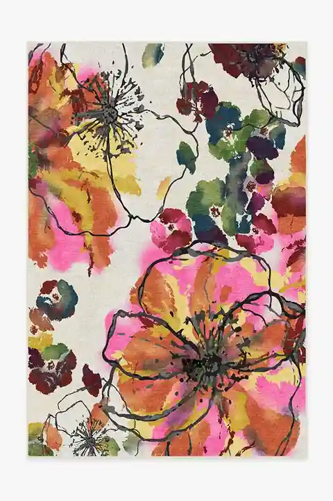 Our show-stopping Watercolor Floral Multicolor rug is an instant head-turner and will elevate the style of your home's interior. Brushstrokes of vivid colors are outlined in true black and neutral grey hues, creating a high-contrasting, contemporary floral design. You'll love how effortlessly this d...more
